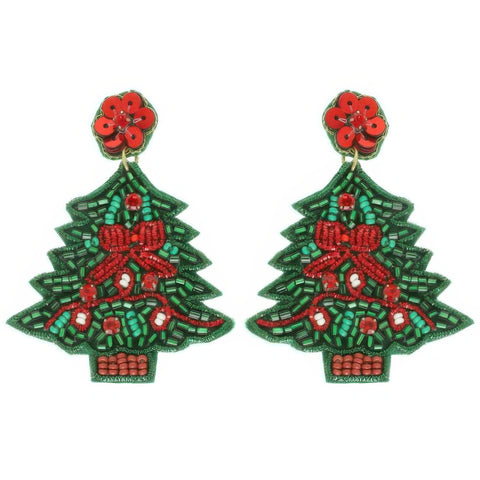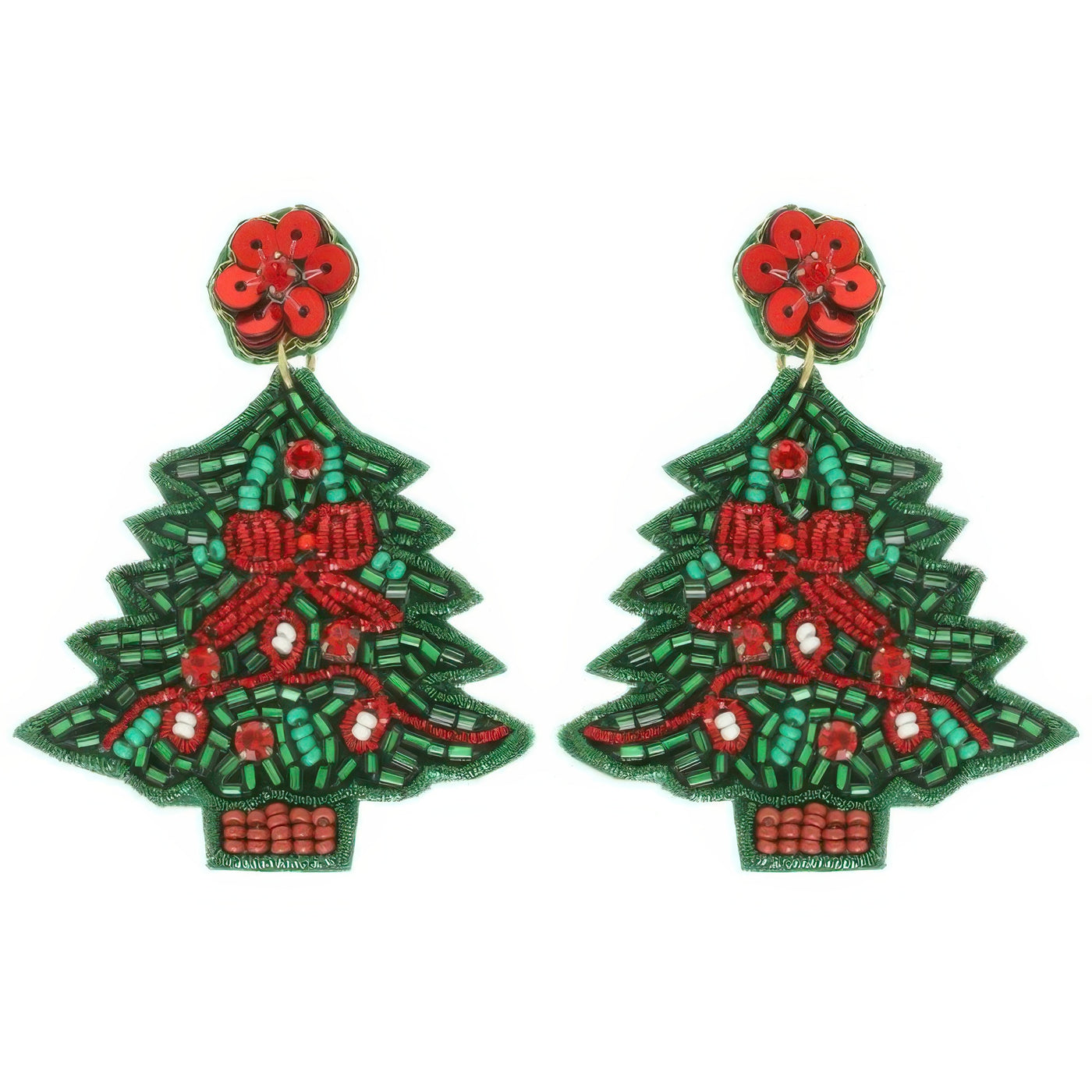 Product Description: Sparkle with festive spirit in the Christmas Tree Seed Beaded Post Earrings. Featuring shimmering beadwork and crystal embellishments, these earrings highlight a glittering star-topped tree silhouette. Lightweight and stylish, they’re a must-have accessory for Christmas dinners, parties, and gift exchanges.