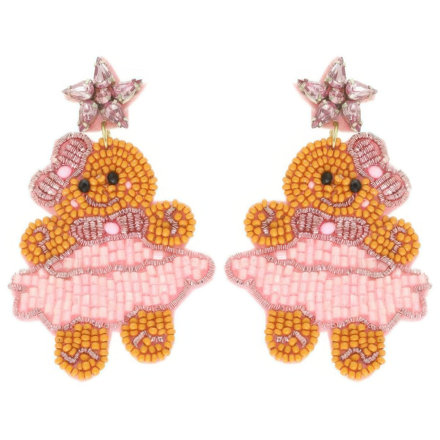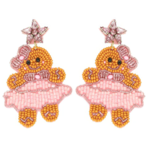 Christmas Gingerbread Ballerina Beaded Earrings - Pink.Pk