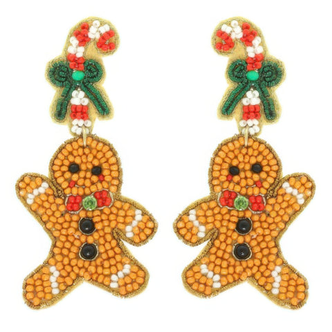 Christmas Gingerbread Man Seed Beaded Earrings Sale