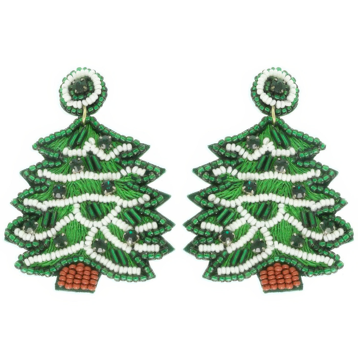 Product Description: Add sparkle and elegance to your holiday wardrobe with the Christmas Tree Post Dangle Earrings. Crafted with shimmering crystals and vibrant seed beads, these earrings showcase a classic tree silhouette with festive embellishments. Their lightweight construction ensures comfort, while the playful design makes them a standout choice for holiday dinners, office parties, and gift exchanges. Timeless and versatile, they’re perfect for both everyday festive wear and special occasions.
