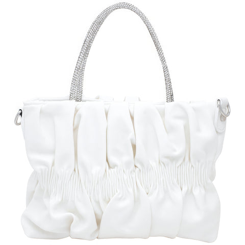 Introducing our Fashion Rhinestone Handle Design Bag, a glamorous accessory that combines elegance with practicality. This stylish bag features a rhinestone-adorned handle design and comes in three chic color options: Pink, White, and Rose.