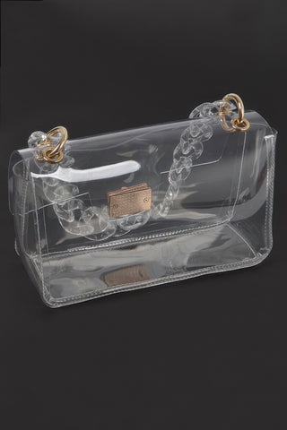 Product Description: Designed to shine, the GlimmerLink Clutch combines clear styling with gold-tone hardware for a contemporary statement. Featuring a sleek crossbody chain and see-through construction, this bag offers function and flair in equal measure. Perfect for fashion-forward outings, it keeps your essentials in view while elevating your look.