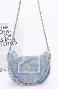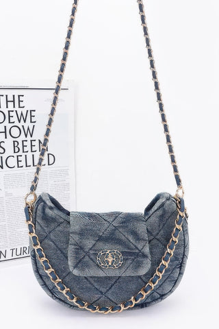 Product Description: The Quilted Washed Denim Crossbody Bag is a stylish take on a timeless staple. Featuring quilted texture, washed denim fabric, and a gleaming chain strap, it adds a cool yet elevated touch to your outfit. Compact and versatile, it’s ideal for daily errands or casual evenings out.