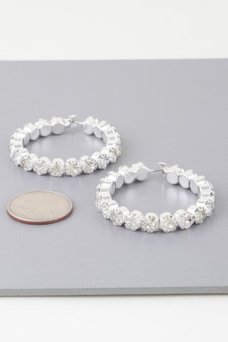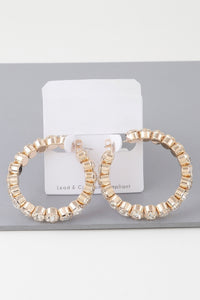 Geometric Rhinestone Cut Hoop Earrings - Gold Clear