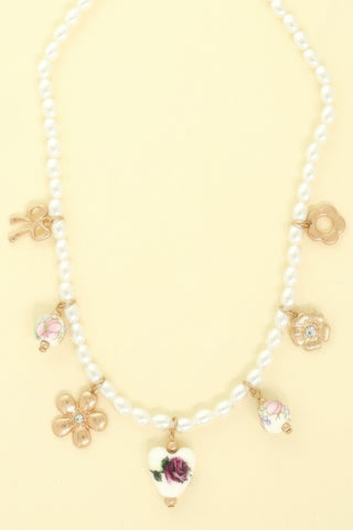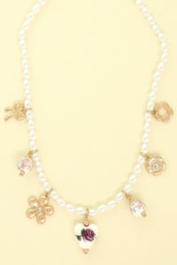 Product Description: Capture springtime elegance with this floral ceramic charmed pearl necklace, beautifully accented in gold-tone metal. The glazed floral beads and petite drop add texture and charm, making it a feminine favorite for brunches, dances, or sweet sixteens. With its lightweight construction and versatile length, it’s an easy style update or a heartfelt gift for flower lovers, daughters, or close friends. A delicate and timeless piece perfect for layering or wearing solo.