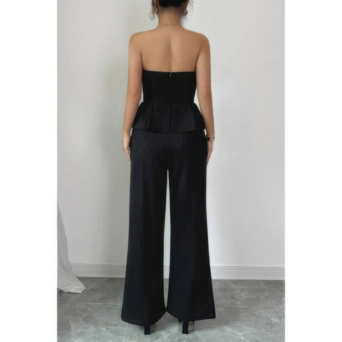 Off Shoulder Back Hide Zipper Pleated Fit Jumpsuit