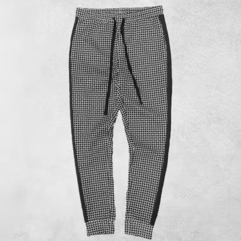 Men's Patterned Sweatpants With Side Stripe - Black / S