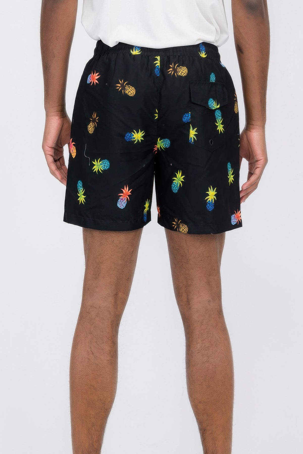 Design: The printed swim shorts feature an eye-catching pineapple pattern for a fun, tropical look. Complete with a full elastic waistband and drawstring for a secure, adjustable fit. Multiple pockets add practical storage for your essentials.
