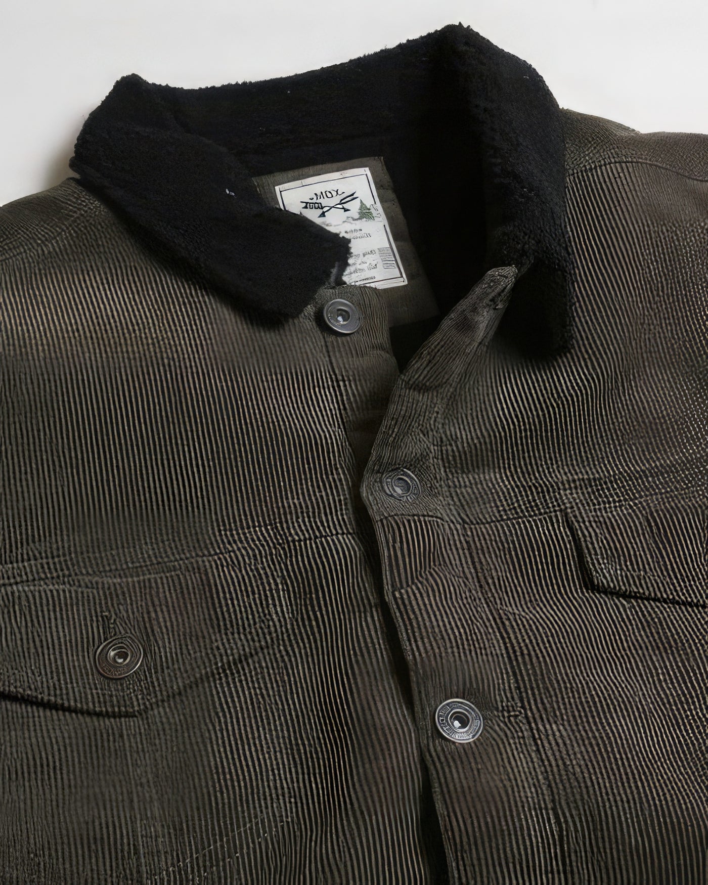 Indulge in the rugged charm of corduroy paired with the warmth of solid sherpa lining, making this jacket a standout choice for both casual and stylish occasions.