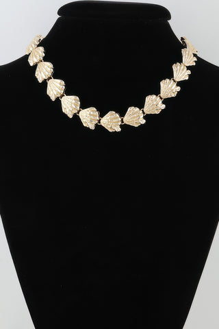 This necklace combines a natural sea shell motif with a polished, hammered texture for an elevated beach-inspired look. Available in both gold and silver, it suits a variety of personal styles and adds a refined touch to any outfit.