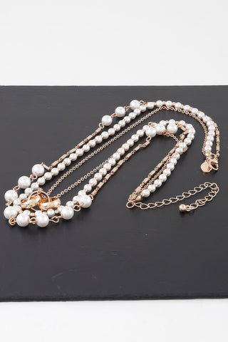 This necklace offers a stylish combination of sleek metal and soft beads, making it perfect for adding a touch of refinement to any look. The gold and silver options provide versatility, while the cream beads add a delicate touch of contrast.
