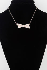 Product Description: The Faux Pearl Bow Necklace brings timeless elegance to the forefront with its charming combination of a polished bow and classic faux pearls. Designed to sit gracefully around the neck, this piece adds instant refinement to any outfit. The balance of texture and shine makes it a standout accessory for both formal and everyday ensembles. Whether paired with a blouse or a dress, it delivers graceful femininity and charm in one beautiful piece.