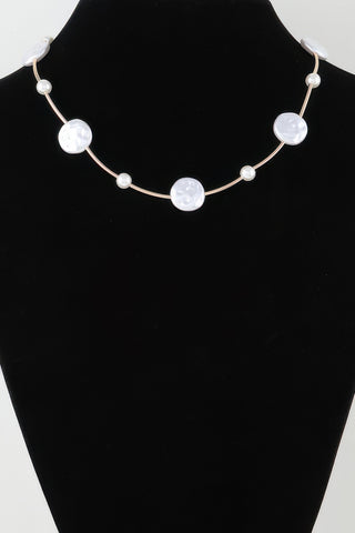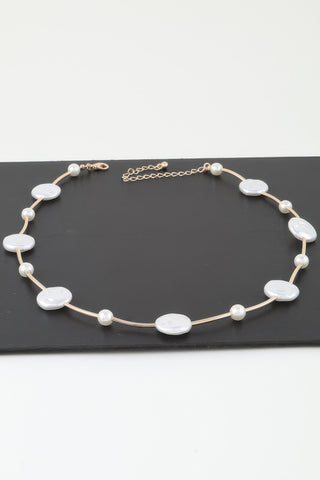 Modern Stone Beaded Charm Necklace - Gold cream