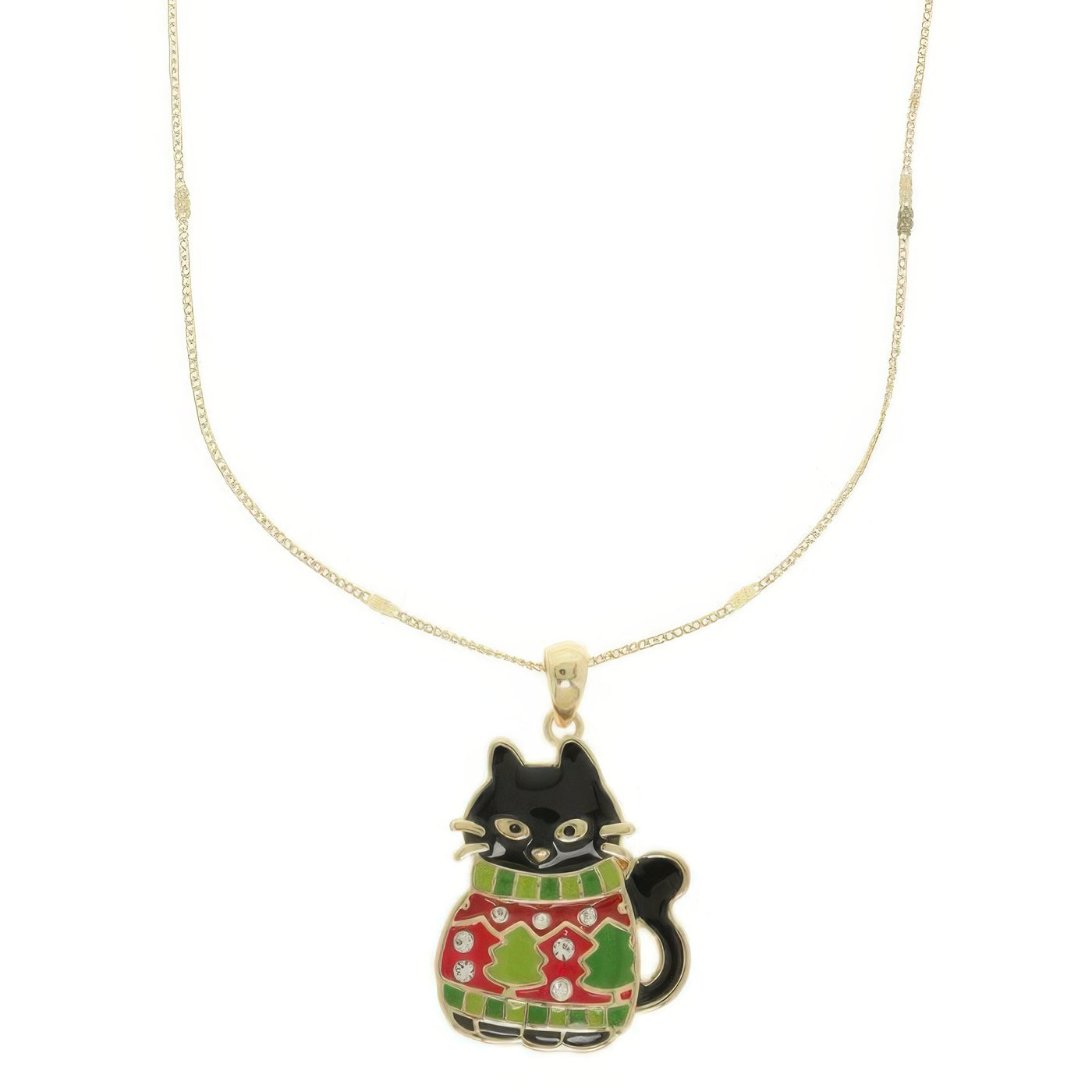 Christmas Cat In Ugly Sweater Pendant Necklace - Multicolor.Gmx