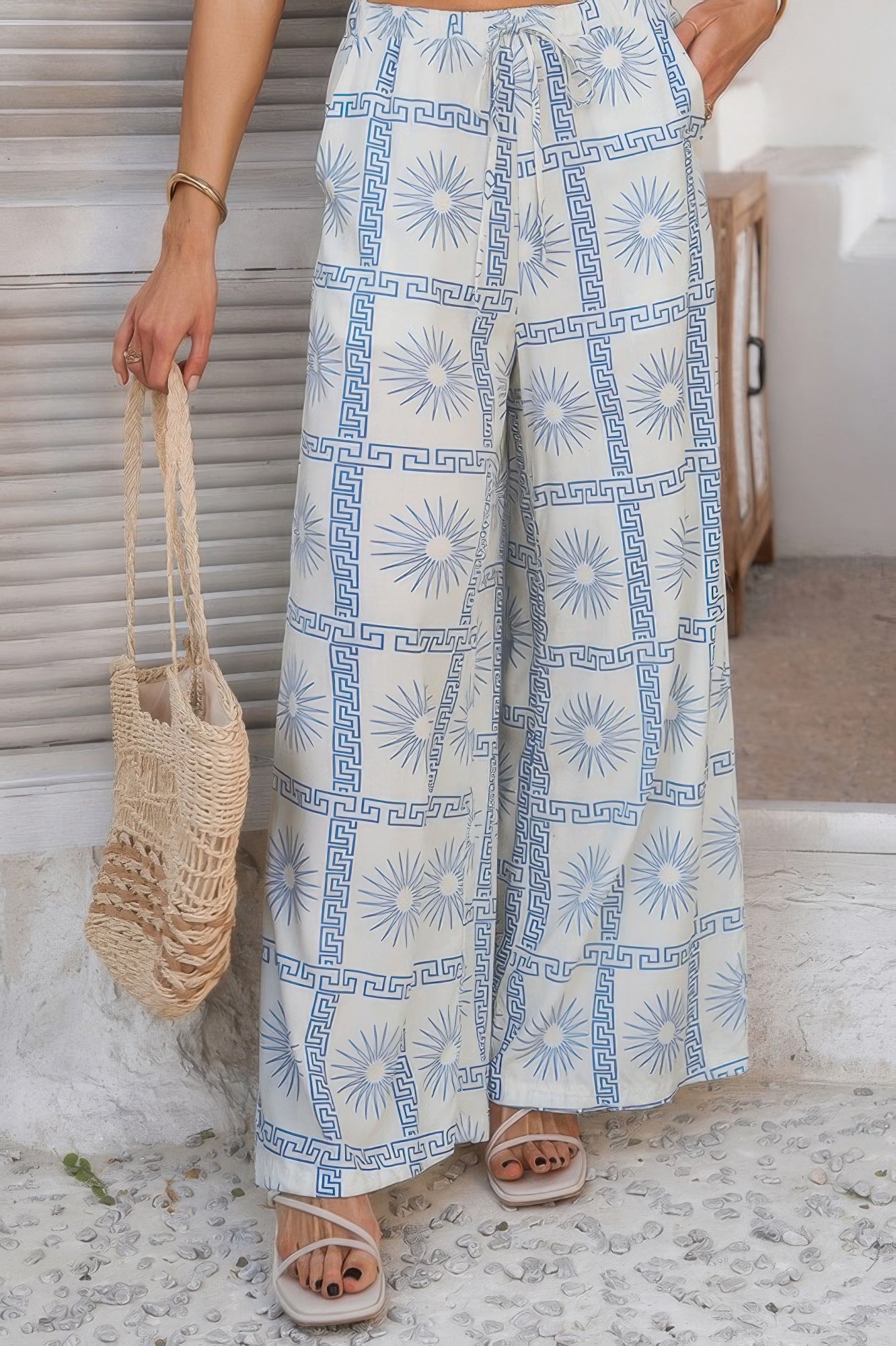 Product Description: Experience comfort and style with these allover print drawstring pockets wide leg pants, perfect for adding a relaxed yet fashionable touch to your wardrobe. Made from a soft, breathable blend of 30% lyocell and 70% viscose, these pants offer a lightweight feel and smooth drape. The vibrant allover print adds a lively, eye-catching element, while the adjustable drawstring waist ensures a customizable, comfortable fit. Featuring practical pockets and a wide leg cut, these pants are ideal for casual outings, vacations, or everyday wear.