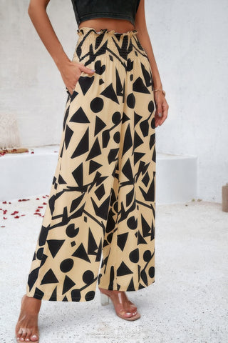 Allover Print Pockets Elastic Band Belt Pant