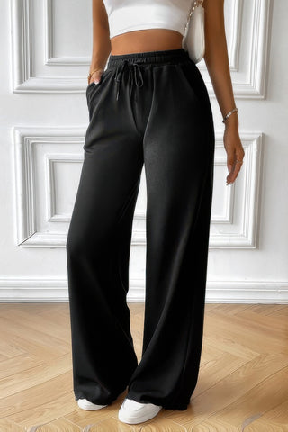 Product Description: Comfort meets everyday versatility in these solid straight-leg pants, designed with an easy elastic waistband and a relaxed fit. Made from a soft blend of polyester and elastane, they offer a smooth feel with just the right amount of stretch. The loose silhouette ensures all-day comfort, while the side pockets add practical convenience. Perfect for casual wear, travel, or laid-back days, these pants pair effortlessly with everything from tees to blouses.