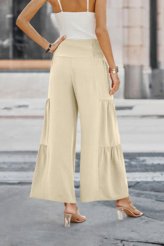 Product Description: These elastic high waist wide leg long palazzo pants combine comfort and chic style for effortless everyday wear. Crafted from 100% polyester, they offer a lightweight and breezy fit that keeps you comfortable throughout the day. The elastic high waist provides a flattering, secure fit, while the wide leg silhouette adds movement and flow for a sophisticated finish. Perfect for dressing up or down, these palazzo pants are a versatile addition to your wardrobe, ideal for casual outings, vacations, or laid-back weekends.