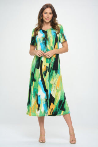 Product Description: Combining elegance and ease, this plus size long dress is designed to flatter with its short sleeves and soft round neckline. The smooth fabric blend provides a luxurious feel and a hint of stretch, ensuring a comfortable fit for all-day wear. Whether for casual outings or special occasions, this versatile piece moves beautifully and offers timeless appeal. Its simplicity makes styling effortless and care routine easy.