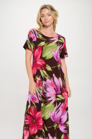 Product Description: The Print BNS Long Dress is the perfect travel companion, offering comfort, style, and practicality in one sleek silhouette. Designed with a soft round neckline and made from a wrinkle-resistant, stretch-enhanced fabric, it moves with you and maintains its polished appearance throughout the day. Ideal for busy lifestyles or jet-setting adventures, this dress can be dressed up or down with ease. Crafted in the USA, it brings timeless appeal to any wardrobe.