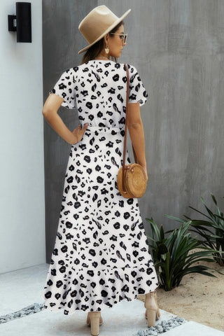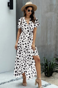Allover Print High V Neck Low Wrap Dress - Green / S