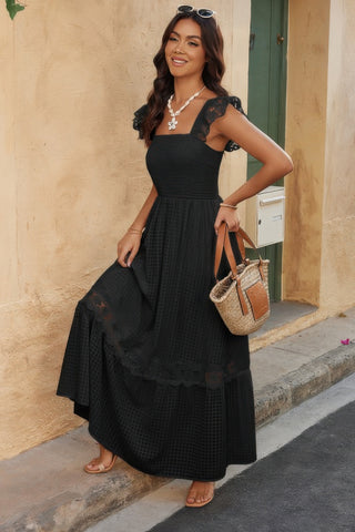 Solid Sleeveless Lace Patchwork Textured Dress Sale