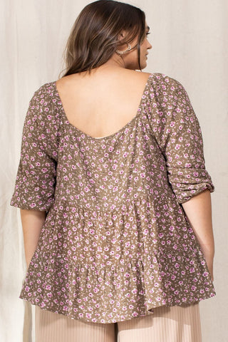 Add our Tiny Floral Printed Square Neckline Top in Olive to your cart now and experience the perfect blend of classic style and comfort!