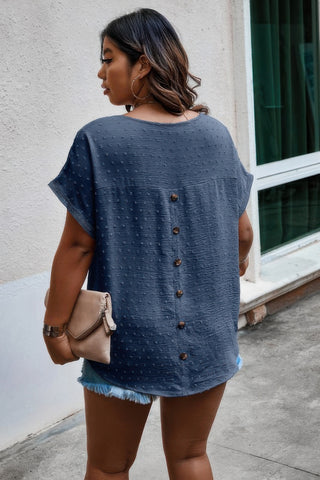 Plus Size Swiss Dot Solid Round Neck Loose Shirt - Navy / 4xl