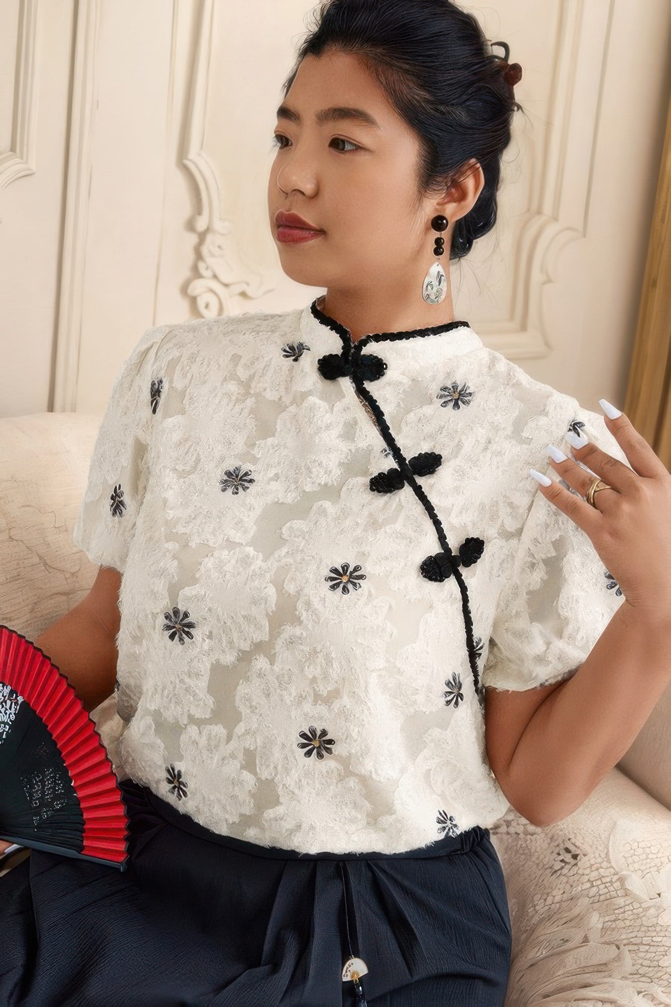 • Plus Color Black Lace Trim Loose Fit Chiffon Top for added style and flair