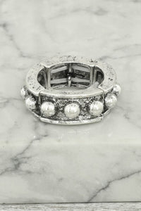 Western Bubble Beaded Stretch Ring - Silver Black