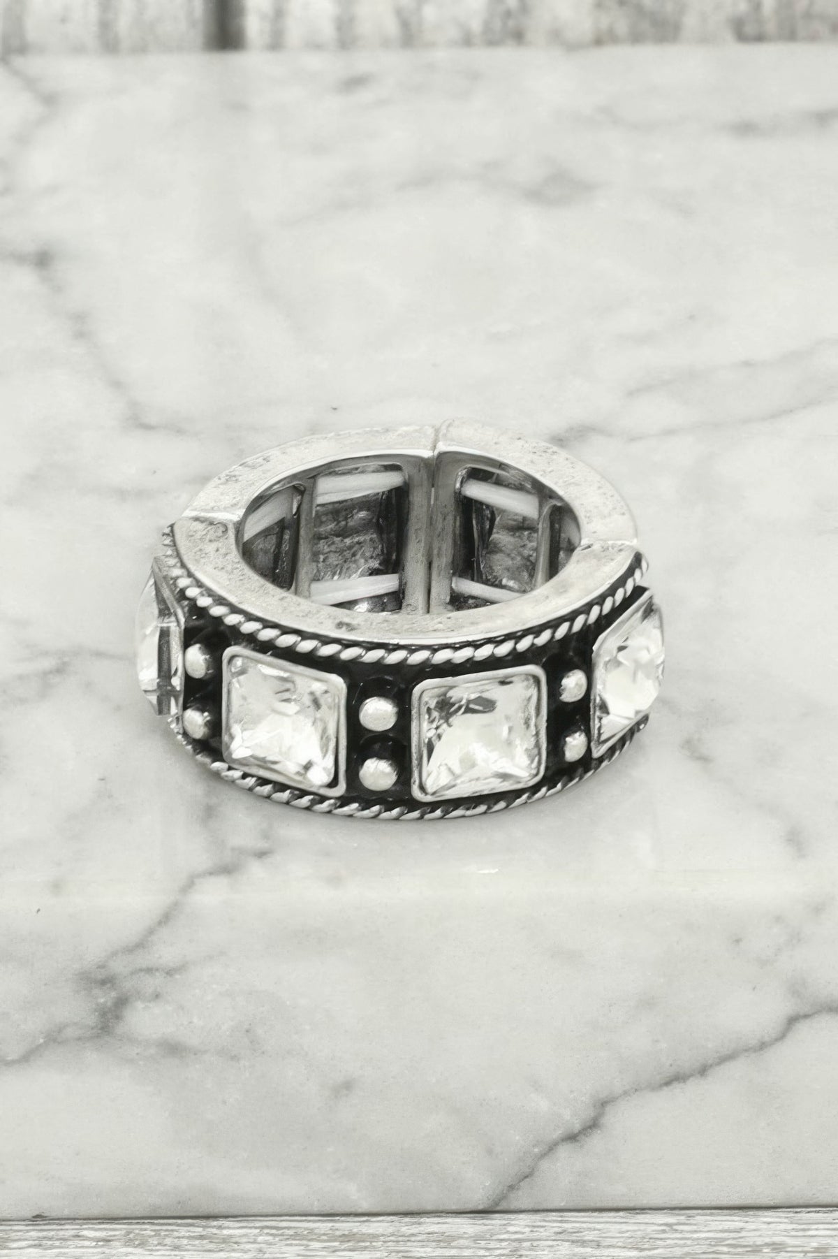Product Description: Elevate your rustic jewelry collection with the Western Square Jeweled Stretch Ring. Featuring a faceted crystal or turquoise center set in oxidized silver-tone metal, this piece blends vintage western style with modern comfort. The stretch band design provides a flexible fit for all-day wear, making it a versatile accent for everything from denim looks to rodeo-ready outfits.