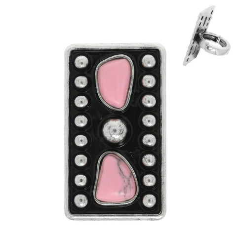 Western Jeweled Rectangle Stretch Ring - Silver Pink