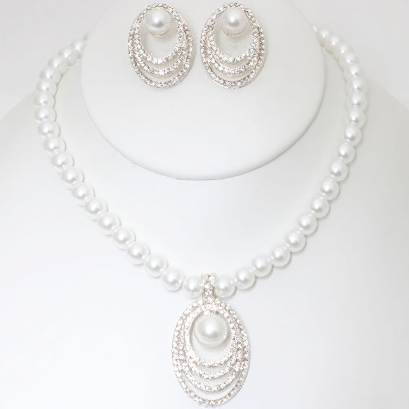 Introducing our Rhinestone Pearl Necklace and Earring Set in elegant white—a sophisticated addition to your jewelry collection.