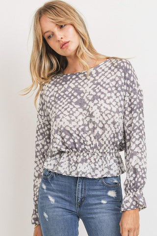 Ruffled Waist Drop Shoulder Long Sleeve Top - S