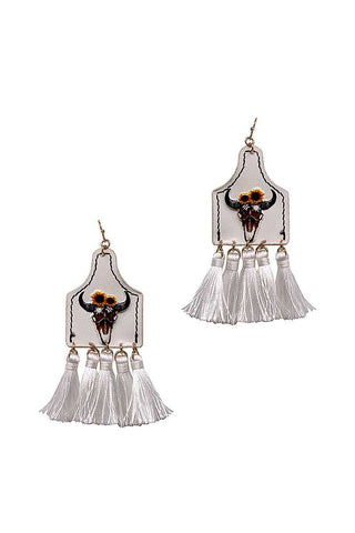 Stylish Western Cow Skull And Tassel Drop Earring Sale