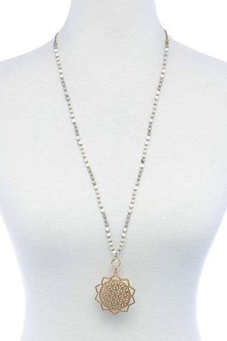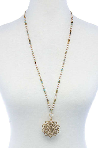 Stylish Sun Flower Pendant Beaded Necklace - Mint