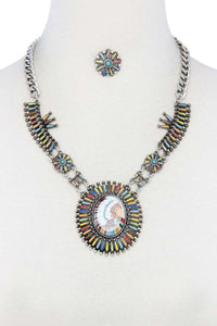 Perfect for both casual and special occasions, the Multi Color Indigenous Pendant Necklace adds a unique touch to your ensemble, making it a versatile accessory for any event.