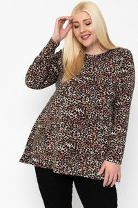Introducing our Cheetah Print Tunic, proudly made in the U.S.A and available in sizes 1XL, 2XL, and 3XL. This stylish tunic showcases a flattering A-line silhouette, long sleeves, and a captivating brown cheetah print for a chic and comfortable look.
