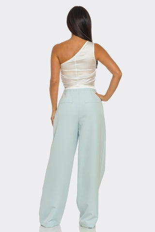 Product Description: The Fanny Pants Set redefines sophisticated style with a contemporary edge. This striking ensemble features a one-shoulder tailored waistcoat, paired with perfectly coordinated straight-leg pants for a sleek and modern look. Crafted from a premium blend of 95% polyester and 5% spandex, it offers both structure and comfortable stretch. The unique one-shoulder design creates an elevated aesthetic, while the tailored waistcoat adds a refined finish to the set. Versatile and effortlessly chic, this outfit is perfect for special occasions or a polished office look.