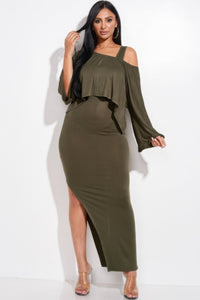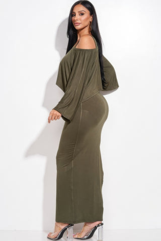 Made In U.S.A S.M.L solid rayon spandex midi length tank dress and slouchy cape top two piece set 95% Rayon 5% Spandex Olive MIS