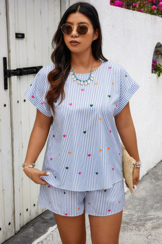 Heart Print Plus Size Two Pieces Strip Loose Sets - Light Blue / 0xl