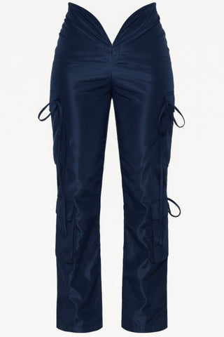 Product Description: Step into standout style with these V-Cut Cargo Pants, crafted for both edge and ease. Designed with a sharp V-shaped waistline, they offer a modern twist on a utilitarian classic. The wide-leg fit and open front create bold movement, while side cargo pockets deliver practical flair. Constructed from a non-stretch polyester-spandex blend, these pants offer structure without compromising on comfort. Finished with an adjustable drawstring waist, they’re a perfect pairing for cropped tops, bodysuits, or layered looks.