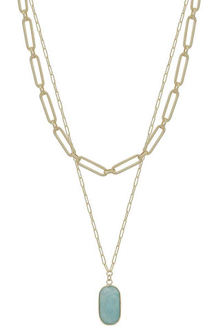 2 Layered Metal Chain Stone Pendant Necklace