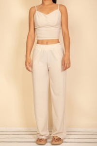 Spaghetti Strap Bralette Top & Wide Leg Pants Set - Beige / S