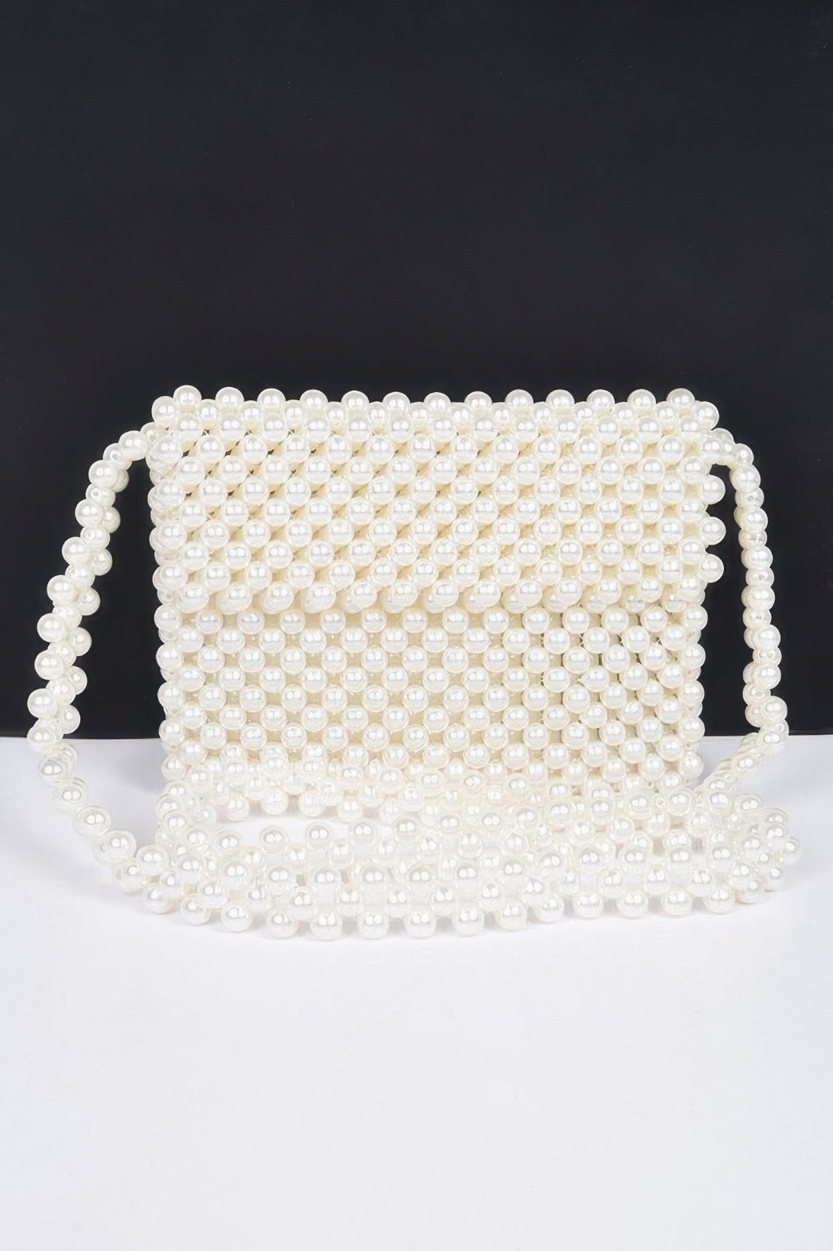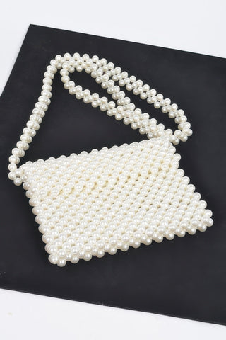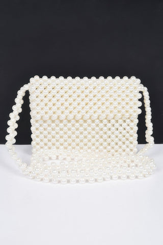 Hand Made Faux Pearl Bead Flap Crossbody Bag Sale