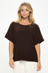 Product Description: This Hit Inbinding Neck Dolman Sleeve Top blends soft structure with statement detail. Featuring a solid front and printed back, it’s styled with a rounded high-low hem and wide dolman sleeves for added comfort. Ideal for casual looks with a bold twist, it’s made from stretch ITY fabric for easy movement.