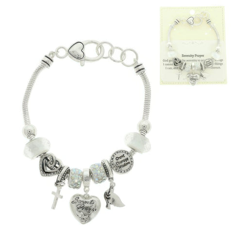 Product Description: Embrace peace and strength with this rhinestone-embellished "Serenity" message charm bracelet. This silver-tone piece combines spiritual sentiment with elegant shine, featuring an engraved bead that reflects a calming and powerful affirmation. Lightweight and adjustable, it’s designed for everyday wear or special faith-based events. A thoughtful gift for loved ones seeking comfort, clarity, or personal encouragement.