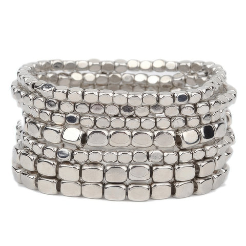 Metallic Cube Bead Bracelet Set - Gold.Gd