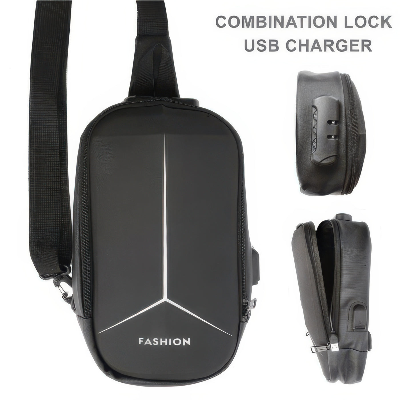Product Description: Stay secure and stylish with this compact sling bag featuring a USB charging port and built-in password lock. Designed with a durable hard-shell body and sleek silhouette, it's perfect for commuting or travel. The adjustable strap and organized compartments make it a functional choice for daily use. Slim, modern, and travel-ready—everything you need in one smart bag.