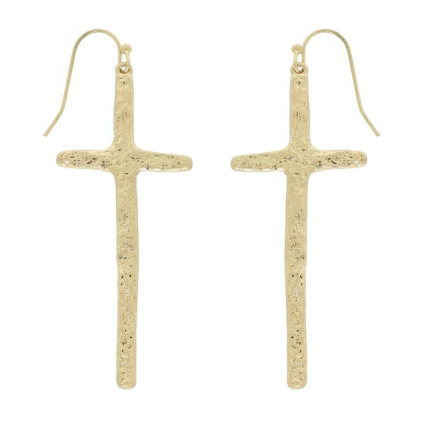 Product Description: Channel iconic style with the Textured Finish Cross Earrings in gold and silver tones. Featuring a rugged, vintage-inspired cross design, these dangle earrings make a statement of both faith and fashion. Their textured finish adds depth and edge, making them perfect for both casual and formal settings. Whether worn to church services or special occasions, they offer timeless elegance and bold symbolism in every detail.